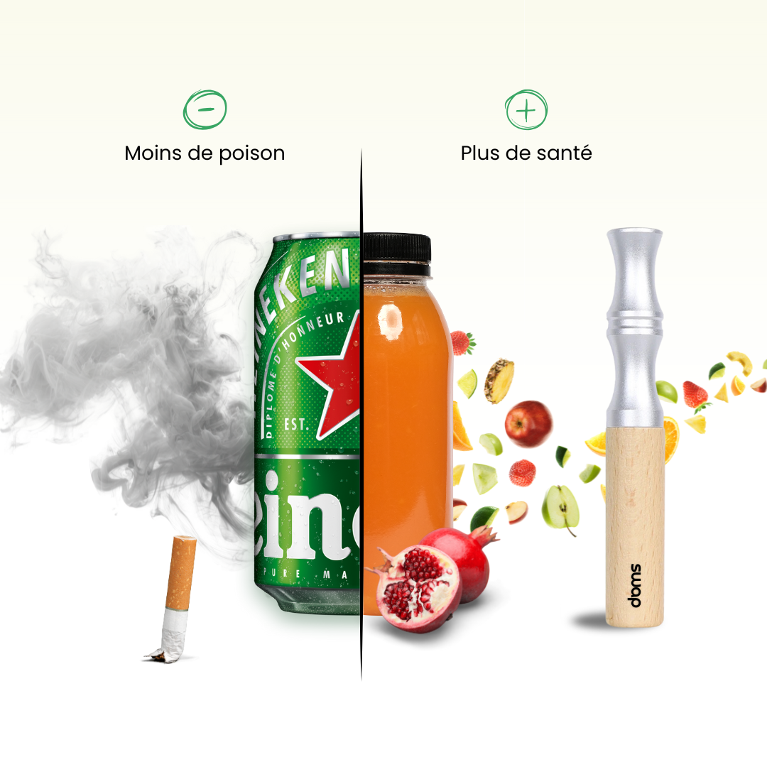 Il ne crée aucune dépendance et n’expose pas aux produits toxiques de la cigarette ou de la vape.